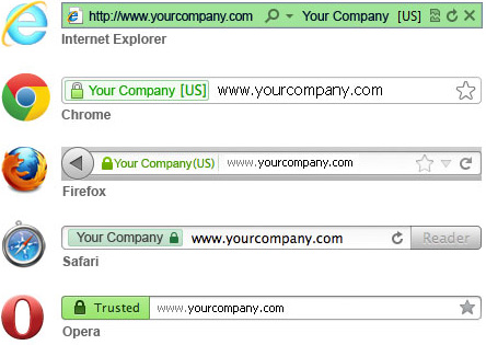 Lợi ích về mặt thương mại khi thanh địa chỉ màu xanh xuất hiện trên trình duyệt. 97% người dùng thường tiếp tục đặt hàng trên các website xuất hiện thanh địa chỉ màu xanh.