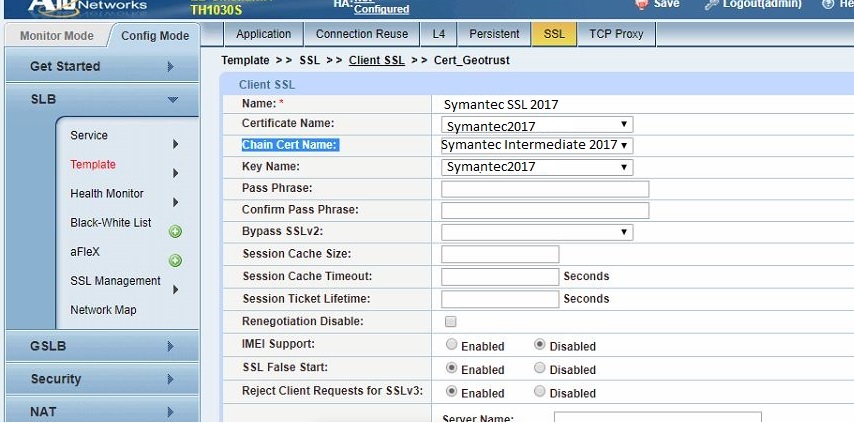 Trong mục Client-SSL Template, chọn "Symantec SSL 2017" (template đã tạo ra trong bước 4).