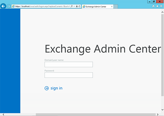 1. Truy cập vào Exchange Admin Center bằng cách mở trình duyệt web và nhập địa chỉ https://localhost/ecp
