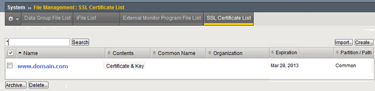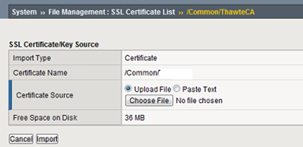 6. Sau đó bạn cần cài đặt Intermediate CA vào F5. Trong màn hình System > File Management > SSL Certificate List, nhấn nút Import.