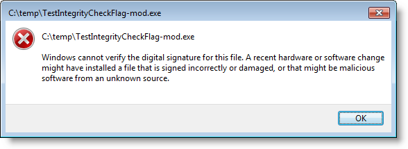 Sau khi ký số cho ứng dụng thành công, ứng dụng không thể chạy và hiển thị thông báo lỗi như sau: