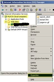 1. Từ màn hình IIS Manager, nhấp chuột phải vào Website chính, chọn Properties.