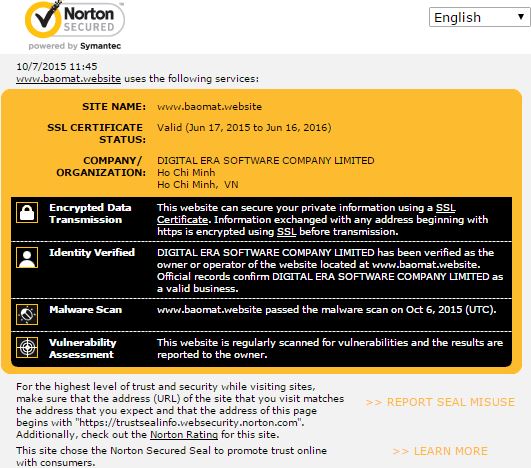 Khi khách truy cập nhấp vào Seal, một poup sẽ hiện ra (với địa chỉ bắt đầu từ https://trustsealinfo.websecurity.norton.com, https://sealinfo.thawte.com hoặc https://sealsplash.geotrust.com) và hiển thị thông tin chủ sở hữu của website: