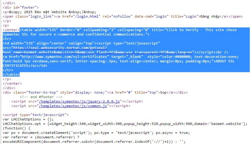 Bạn dùng Notepad để copy đoạn mã HTML của Secured Seal và paste vào mã nguồn HTML của website tại vị trí phù hợp.