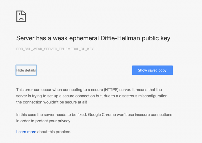 Đối với các máy chủ chạy Zimbra phiên bản cũ hoặc không thương xuyên cập nhật, Google Chrome sẽ cảnh báo lỗi bảo mật ERR_SSL_WEAK_SERVER_EPHEMERAL_DH_KEY khi truy cập vào Webmail.