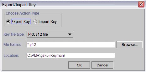 7. Chọn Key database file type là PKCS12. Nhập tên file. Có thể Browse để chọn vị trí chính xác.