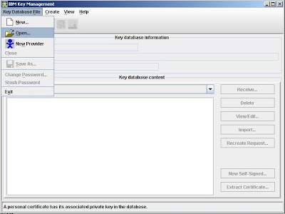 1. Gõ lệnh ikeyman trên dòng lệnh Unix hoặc chạy tiện ích Key Management trong thư mục IBM Websphere Server (Windows)