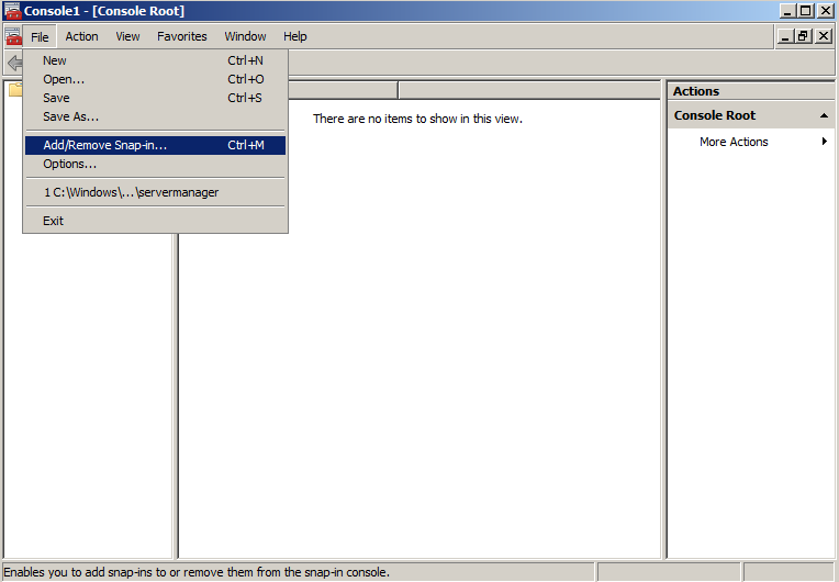 3. Từ màn hình mmc, chọn File > Add/Remove Snap-in