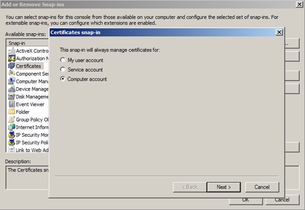 4. Trong màn hình tiếp theo chọn Certificates và nhấn nút Add.