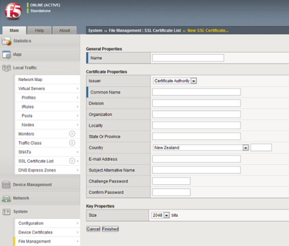 Để tạo CSR cho F5 BIG-IP, bạn thực hiện như sau: