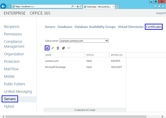 3. Chọn mục Servers trong menu bên trái, sau đó chọn mục Certificates trong menu phía trên bên phải. Chọn máy chủ phù hợp rồi nhấn nút +.