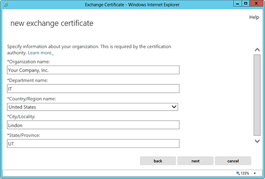 Để tạo CSR cho Microsoft Exchange 2013, bạn thực hiện như sau: