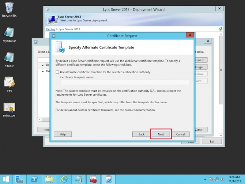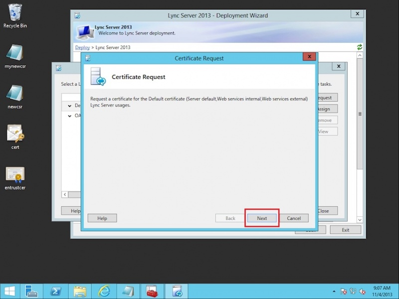 5. Trong màn hình Certificate Request nhấn Next.