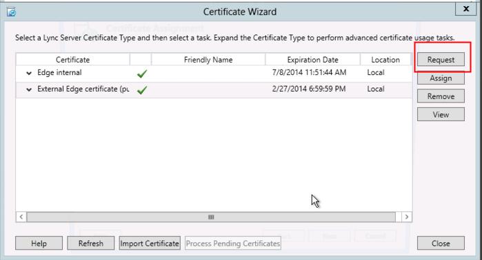 4. Chọn External Edge Certificate và click Request.