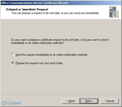 5. Chọn mục "Prepare the request now, but send it later" và click Next.