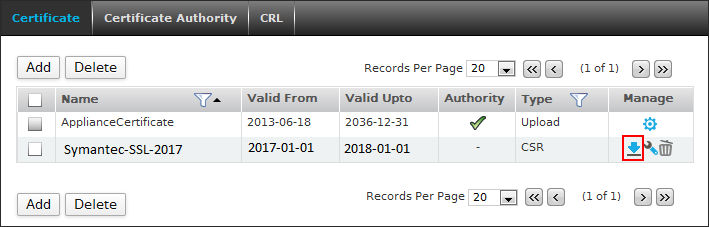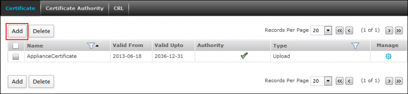 1. Đăng nhập vào web quản trị của Cyberoam với quyền admin. Sau đó vào mục System > Certificate > Certificate, sau đó nhấn Add