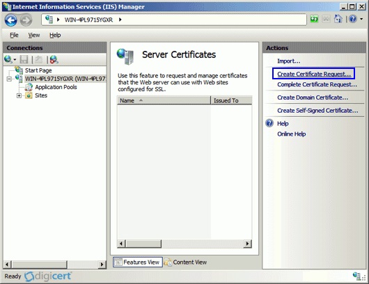 Để tạo CSR trên Microsoft IIS 7/7.5 (Windows Server 2008), bạn thực hiện như sau: