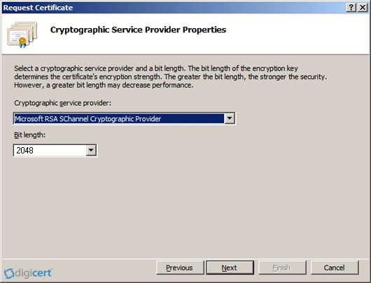 Cryptographic service provider - chọn Microsoft RSA SChannel... từ danh sách