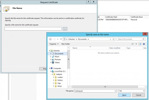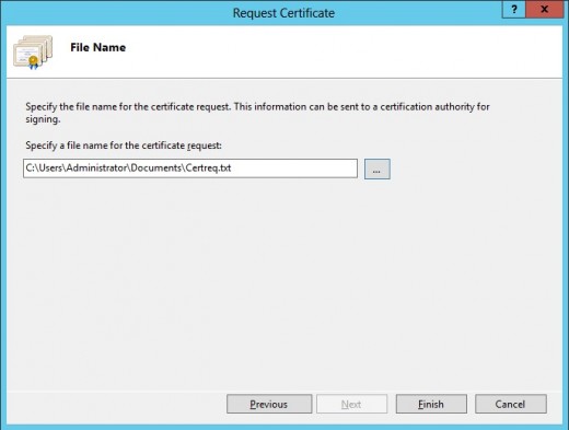 9. Chọn đường dẫn và tên file để lưu CSR. Ví dụ certreq.csr.