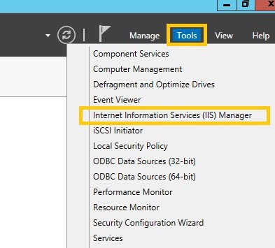 2. Chọn mục Tools > Internet Information Services (IIS) Manager