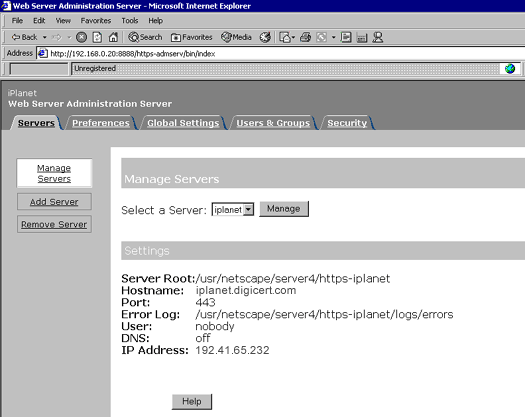 1. Đăng nhập vào iPlanet và chọn tab Servers.