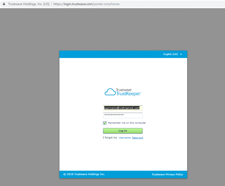 Sau khi thiết lập mật khẩu thành công, bạn sẽ được chuyển đến màn hình đăng nhập. Trong trường hợp bạn không được chuyển hướng, thì có thể truy cập vào trang đăng nhập tại đây: https://login.trustwave.com