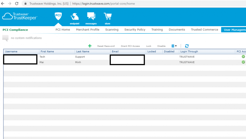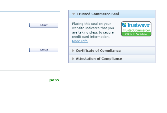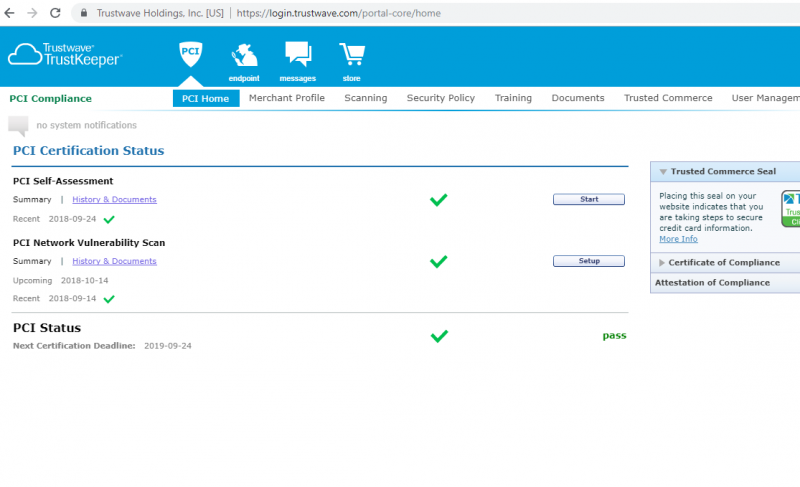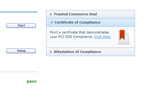 Sau khi quá trình quét hoàn tất và các lỗi được tô màu đỏ đã được khắc phục và quét lại thành công, trạng thái PCI Network Vulnerability Scan sẽ chuyển sang trạng thái PASS. Tương tự như thế, trạng thái PCI Self-Assessment sẽ chuyển sang trạng thái PASS sau khi bạn trả lời hoàn tất cho mọi câu hỏi trong SAQ.