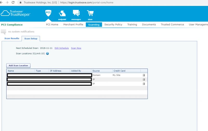 Nhấn nút Setup trong mục PCI Network Vulnerability Scan để thiết lập thông số cho tất cả các máy chủ, hệ thống website của bạn.