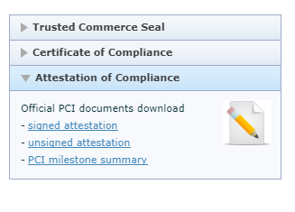 Lúc này, bạn để ý bên cột bên phải màn hình sẽ xuất hiện các liên kết để bạn tải về các chứng nhận PCI-DSS Compliance như: ASV report, AoC report, Trust Commerce Seal,...